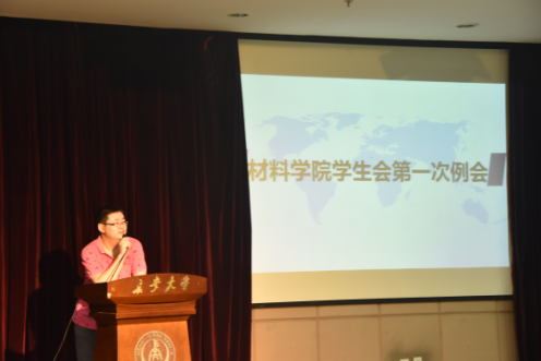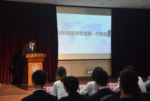 之后,秘书处干事宣读了《材料学院学生会章程》,组织部部长宣读了《学生会考核标准》。随后团委副书记兼团委办公室主任王筠博上台讲话。他强调了文化建设的必要性,同时,对学习与工作的重要性做了比较,希望同学们管理好自己的时间,努力学习,高效认真的完成学生工作。学生会副主席吴文青上台发言,她强调了学生会内部团结一致的重要性,并向同学们介绍了学生会的工作职能。最后,全体师生合影留念。