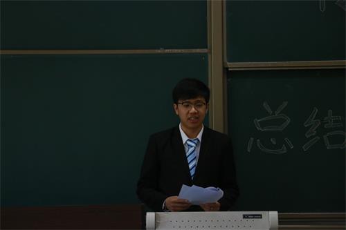 随后,2015-2016学年主席团成员换届选举大会正式举行。各参选者按顺序上台进行了竞选演讲,其他候选者在场外排队候场。每位参选者上台后都先进行了自我介绍,紧接着做了本年度的工作总结以及对自己工作情况的认知,最后表达了对未来工作的展望。随后,他们对老师的提问做出解答。