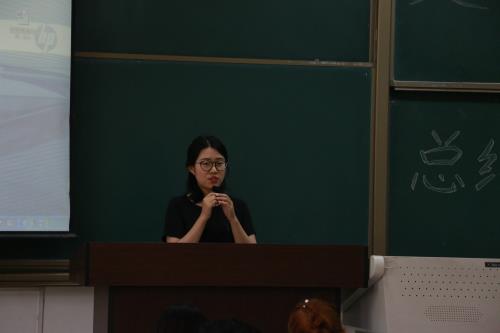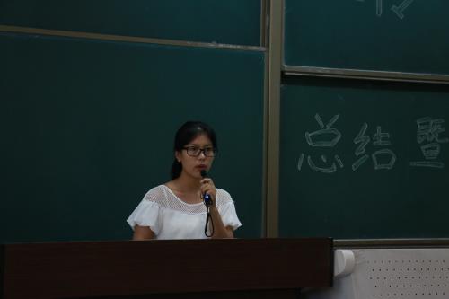 接下来,我院团委书记黄珞老师进行总结发言。黄珞老师肯定了这一学年我院在举办大型晚会、参加运动会等方面取得的重大突破,并鼓励同学们再接再厉、再创辉煌。她说:“这一年是不同寻常的一年,文传学院在今年是稳中求进、硕果累累。这与同学们的认真负责、创意和行动力是分不开的,学院为有你们这样的学生干部而感到骄傲与自豪。”