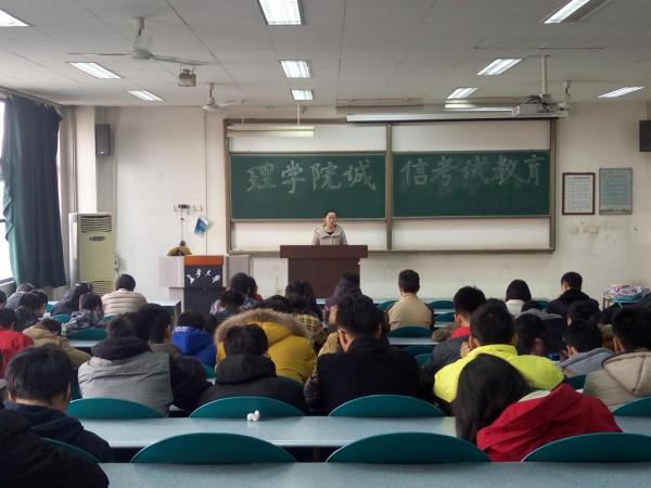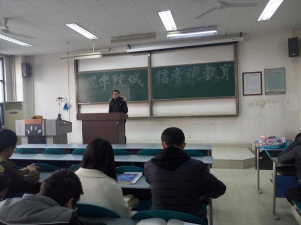 2016年12月30日10:00,我院在明远1206教室召开诚信考试教育大会,本次会议由辅导员王宙主持召开,15级、16级全体学生与会。