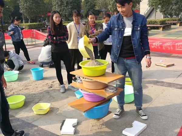 为了培养大学生开放性思维和动手能力,在校园内形成科技制作的良好风气,活跃校园文化生活,理学院科协于2017年11月5日在东区树慧园广场举办第九届筷子结构模型承载力设计大赛初赛。