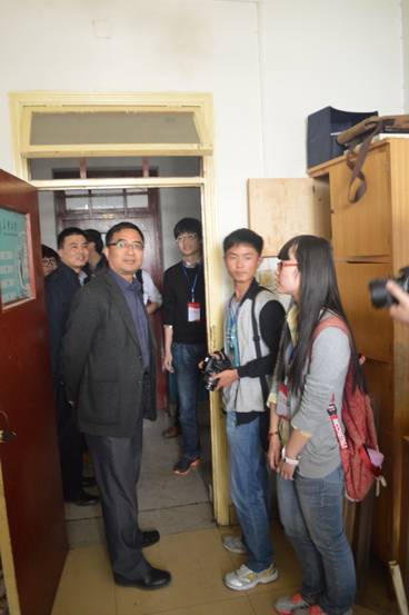 仪式结束后,田书记又视察了2号楼公路学院男生宿舍的内务的整理情况,公路学院党委副书记雷显锋、团委书记刘徐、以及公路学院13级辅导员参与陪同。田书记随机参观了几个宿舍,对宿舍的洁净程度和内务整理情况提出了好评。一路上,田书记与宿舍里的同学们亲切交谈,气氛轻松愉悦。视察宿舍完毕,田书记对随从参观的老师及学生干部提出了几点要求。他说老师及学生干部应该号召同学们既要养成经常清理宿舍的好习惯,又要培养属于自己宿舍的独特的文化气息,真正地将宿舍当成自己的家。