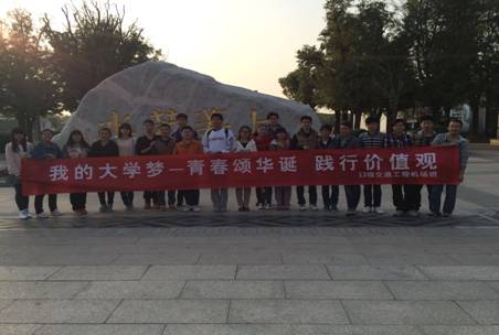 初冬才至,虽然空气中微微带一丝寒意,但阳光明媚,万里无云,真是天公作美。13级交通工程机场班的同学集聚于汉城湖,举行以“我的大学梦——青春颂华诞,践行价值观”为主题的团日活动。