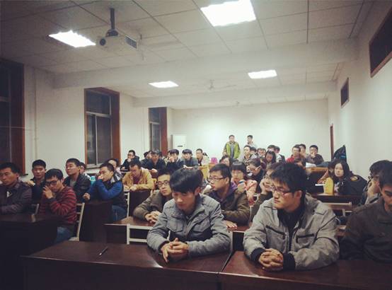 随后,温晖代表研会分会成员作自我介绍。精炼的介绍,表达了他对14届研究生会认可的感谢,对自己有能力带好大四分会的充足信心。参加会议的大四同学们也依次介绍了自己,介绍过程活泼、充满欢乐,首次展示了分会的团结。