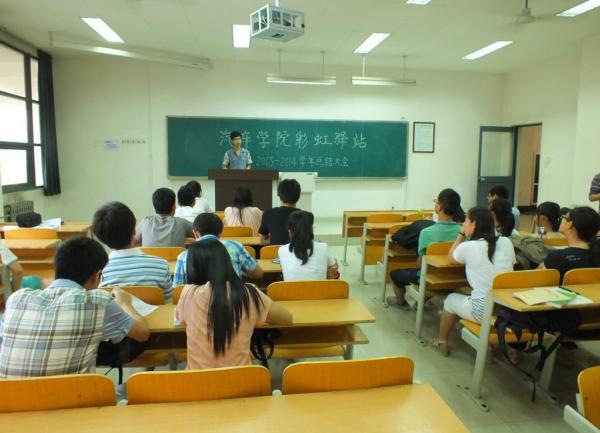 晚7:00,会议如期举行,首先主持人就对大家的到来表示了感谢,随后他向大家介绍了今晚到场的主席团成员。接下来,彩虹驿站总结大会正式开始,首先主席吴撼明就过去的一年进行了总结,他指出,在过去的一年里,大家工作认真负责,圆满的完成了各项工作,但同时他也指出了其中存在的一些问题,希望大家在能够改正不足之处。同时他也就换届问题提出了自己宝贵的建议,赢得了同学们热烈的掌声,最后他希望大家在以后的驿站工作中能够尽心尽力,出色的完成各项工作。