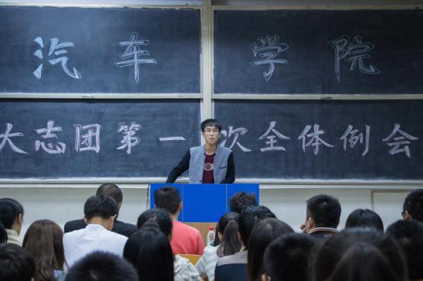 2014年10月10日晚上七点,我院在修远教学楼召开了“汽车学院大志团第一次全体例会”。例会到场嘉宾有汽车学院大志团指导老师翁琳源,大志团主席卢炳霖,大志团副主席李思航,学生会主席陈乐,团委副书记葛瑞,心协主席陈洁,班联主席李学博,团委办公室主任许超然,科协主席郝迎宾。同时出席例会的还有各部门部长、副部以及干事。