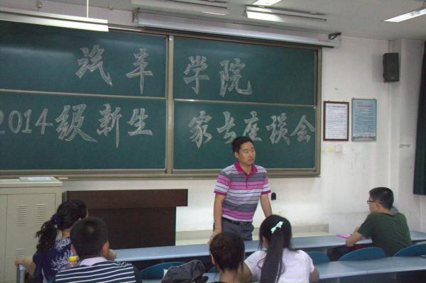 9月3日是我院迎新工作的第一天。下午3点,我院在渭水校区明远1205教室开展了一年一度的2014级新生家长座谈会。出席座谈会的有我院副院长袁伟、党委副书记李晓阳、团委书记倪凤英老师以及2014级辅导员顾玉磊老师。我院部分家长及新生到场聆听了本次会议。座谈会由我院党委副书记李晓阳主持。
