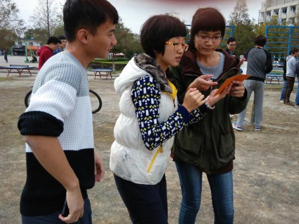 活动当天,同学们各个斗志昂扬,充满活力!分组过后,活动正式开始,第一关为“我是学霸”,根据所给题目找到相应教室,再寻找下一条线索。之后的“一起跳绳吧”、“火眼金睛”、“安全去哪儿”等关卡均在一片欢笑中完成。同学们争分夺秒,按照线索从西区篮球场过关斩将冲到了朝晖体育场!而最后的“撕名牌”游戏更是将活动推向了高潮,引来许多同学的围观!