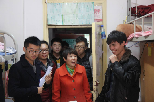 11月25日中午12:30,我院寝室卫生检查工作再次进行。参与本次检查工作的有我院团委书记倪凤英老师,团委副书记郭咏梅老师,14级辅导员郑文捷老师,袁晓磊老师,15级辅导员赵士洋老师以及学生会主席团。随行的干事仔细检查,并对寝室卫生情况认真做好记录。