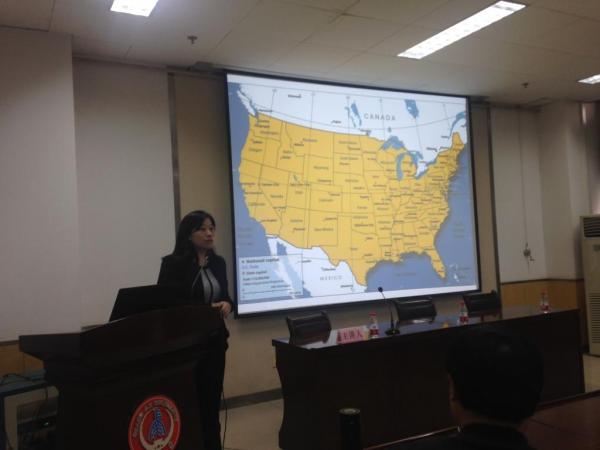 张瑜教授首先对美国南佛罗里达大学及自己的团队进行简要介绍,对交通组的工作做了介绍。其次,她为同学们详细讲解了共享自行车方面的交通运输的理论方法研究,她说将多交通工具无缝连接,有效的利用现有交通设施,提高交通工具的灵活运用。然后,张教授着重讲述了利用智能手机功能实现交通工具的自由浮动式是未来的发展趋势,她强调在这方面将会不断加大研究力度,张教授和现场师生深入剖析了如何实现自行车共享再平衡研究这个现实且有意义的问题。最后,与会师生积极地与张教授进行了现场互动交流,张教授也对大家的提问逐一进行了耐心解答。