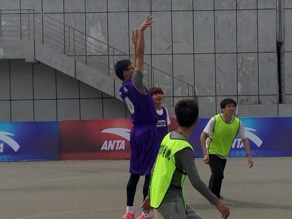 中场双方队员稍事休息,下半场比赛在现场激情的音乐中继续进行。建筑队员先发球,接连出手不进。但汽车队员配合默契,每个队员都能进球得分,比分继续拉开。比赛进入最后三分钟,建筑队员激烈拼抢,积极防守,但无奈手感不佳,无法扳回比分。临近结束,建筑队员外线远距离出手,球终于入框,但分差太大,一球挽救不了比分的劣势。最后汽车以24:5的巨大领先优势取得本场比赛的胜利。