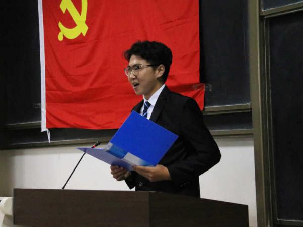 接着,本期培训班班主任翁琳源老师介绍了本期党校课程设置,并宣读了党课纪律规定。最后学生党员代表傅文谦同学和本期学员代表张昊男同学分别发言。