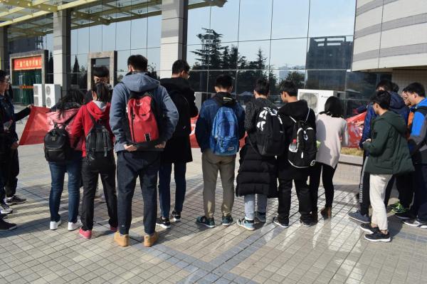 十九大知识竞赛结束后,在团支书刘盼的带领下,全班同学前往公寓楼宣传安全知识、分发宣传单、讲解安全隐患后果实例,并张贴宣传标语。中午十二点,于滋兰苑餐厅南门拉开横幅进行签名活动,并赠送小礼物给积极配合的同学。本次活动以合影留念的方式结束。