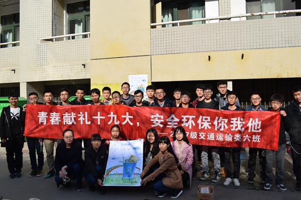 2017年11月28日,由长安大学汽车学院团委主办,汽车学院17级交通运输类六班承办的“青春献礼十九大,安全环保你我他”团日实践活动圆满结束。交通运输类六班全体成员参与活动。