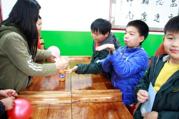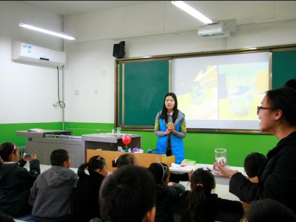 随着上课铃声的响起,此次活动的主人公们陆续登场,80名经开六小的三年级学生代表怀着好奇与期待依次入座,主讲师向同学们讲述了5个科普实验,同学们不时发出阵阵惊叹,同时,提前分配好的讲师们引导各自组的同学进行实验的具体操作。在活动开始之前,志愿者们在鲁照飞部长的指挥下进行活动准备,为活动的有序进行打下了基础。活动中的有奖问答环节也进一步调动了同学们的积极性,让他们更深入的了解了科普实验及其科学知识。