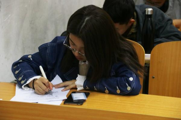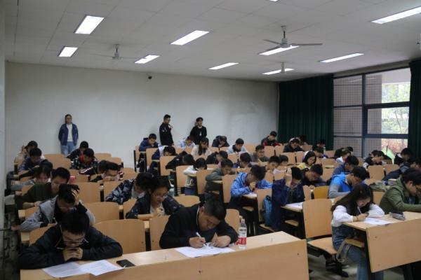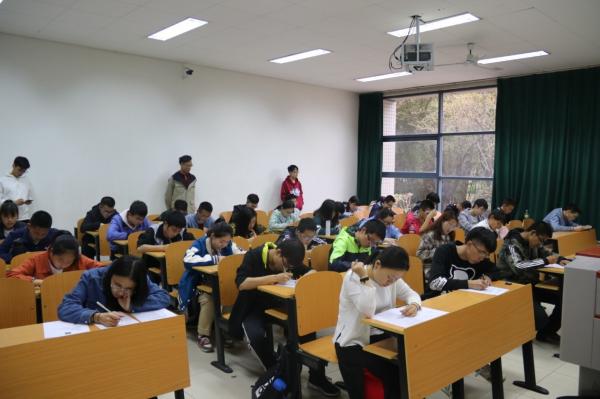 赛前,主办方已将相关资料发送给各支参赛队伍,选手们都进行了认真的学习。显然,大家对本次比赛热情都非常高涨,两个教室都坐满了同学。在比赛开始前的一段准备时间里,许多选手还在认真研读有关资料。赛场上,选手们奋笔疾书。其中不乏气定神闲、胜券在握般的“大神级别”的人物,当然也有初次参赛,略显紧张的同学。每位选手都依照比赛规则,认真作答,一丝不苟。现场气氛紧张而肃静。