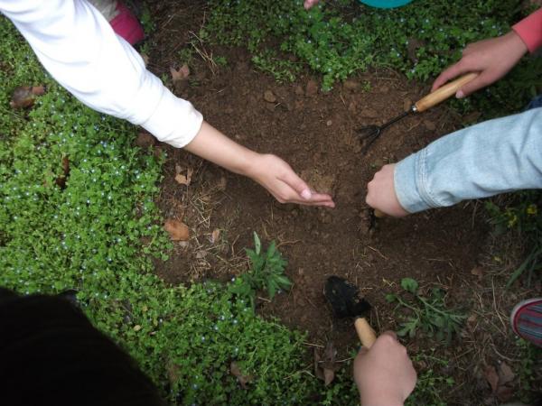中午11:00,同学们进入未央湖游乐园,步行了5分钟左右,进入一片树林。雨后的树林空气格外清新,同学们个个兴致勃勃的拿起铁锹进行种花行动。在一片欢声笑语中,播撒着美丽的花苗,同学们兴致很高涨。在树林中偶遇采野菜的老婆婆,同学们热情的询问,并且帮助老婆婆采野菜,气氛十分融洽。中午12:30,种花活动圆满结束。