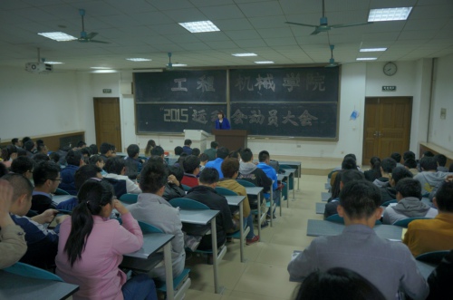 2015年3月22日下午4:00,我院2015年春季运动会动员大会于图文楼1101教室成功举办。院党委副书记曾力老师,院团委书记谢静老师,院团委副书记朱先前老师,院心理彩虹驿站站长刘飞老师出席了本次大会。参加此次大会的还有工程机械学院各团学组织学生干部、各班班委等。本次大会由谢静老师主持。