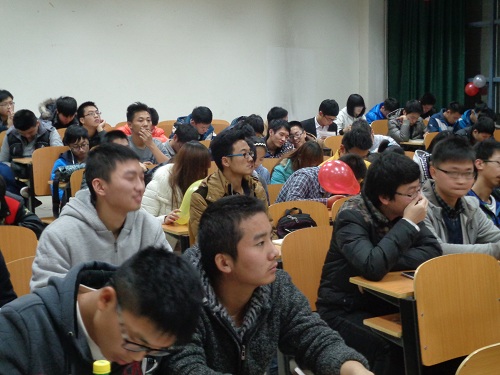 然后,是本晚活动的互动环节,在互动环节中同学们表现踊跃,并且在随后的惩罚项目中,同学们的搞怪表现引起了台下阵阵掌声和笑声。