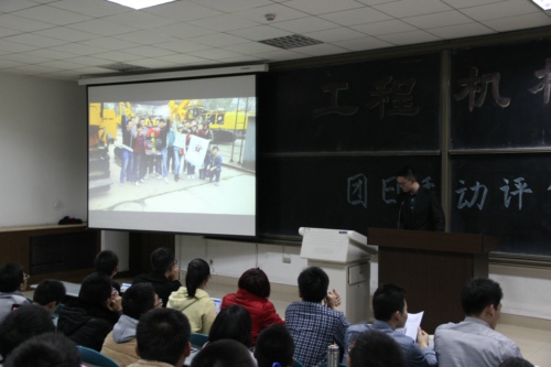 2014年11月27日19︰00,工程机械学院团日活动评优大会在长安大学图书馆东侧1101教室成功举办。本次大会的评委有团委书记谢静老师、学生团委副书记唐倩茹、团委学生会主席黎明、团委科协主席何文凯、团委青年志愿者服务队主席邢永乐、爱心助学导航站主席王文威和彩虹驿站主席宣兴旺。共有十二个班级的同学代表参加了本次大会。