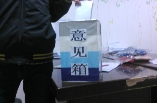 意见箱的设立拉近了各部门与学生们之间的距离,既是一个聚宝箱、和谐箱,能为我们构建和谐校园出一份力,也是我们工作的一个重要帮手,更将成为校园和谐的一个亮点。
