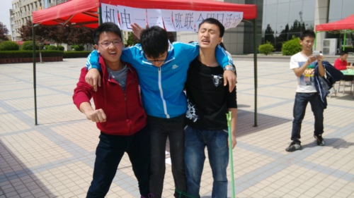 2015年4月12日,工程机械学院2014级电一电二电三班在十一点滋兰苑门口举办了团委下发的联合团日活动三人两足过障碍比赛。