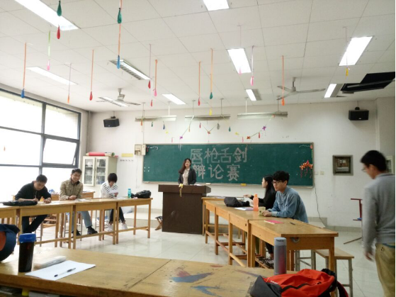 辩手中只有个别同学有辩论的经验,在辩论赛正式开始初期,没有经验的辩手不免有些紧张,显得生涩,但是随着赛事的推进,辩手们渐入佳境,争分夺秒,尽力在有限的时间内将己方的观点及相关论据表达清晰,唇枪舌剑,如火如荼,为全班同学献上一场精彩的辩论赛。