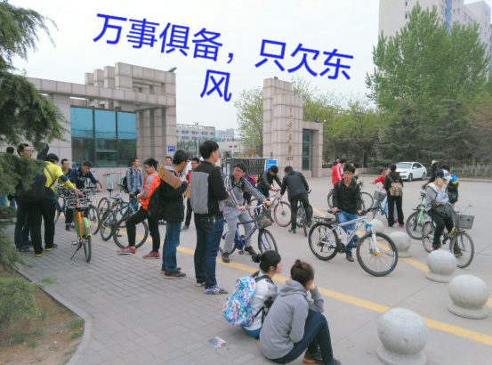本次活动所有参与人员将于十点整在学校北门集合,集合完毕后骑自行车前往渭河城市运动公园。旨在通过本次活动宣传“低碳环保,绿色出行”理念,并身体力行,为环保事业做出自己的一份贡献。