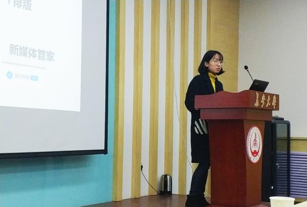 活动开始,牛洪昌从图形失败设计分析着手,引出PPT设计中的配色、排版、布局等内容,并通过案例分析指导大家轻松做出令人满意的PPT。接着,马得力对摄影作品的剖析和摄影技巧的讲解环环相扣,赢得现场阵阵掌声。他对拍照角度、意境和照片中的线条三个方面的讲述将现场氛围推向高潮。最后,安萌以生动形象的方式讲了新闻稿从写作到推送的全过程,并简单介绍了软件的使用方法,通过案例的分析鼓励大家尝试建立个人公众平台。