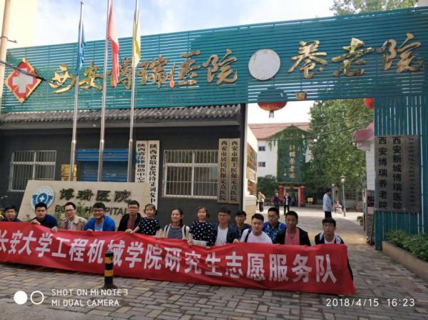 2018年4月15日下午2点,我院研究生志愿服务敬老院活动于西安新城博瑞医院圆满举行。参加本次活动的有我院研究生辅导员高婷婷,研究生会主席范元涛,科协主席马景存以及志愿服务队全体成员。
