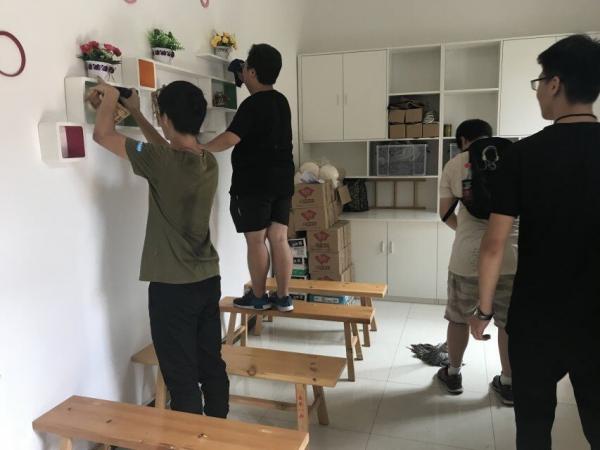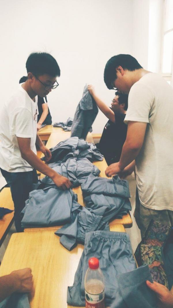 青年们在整理纪念馆衣物