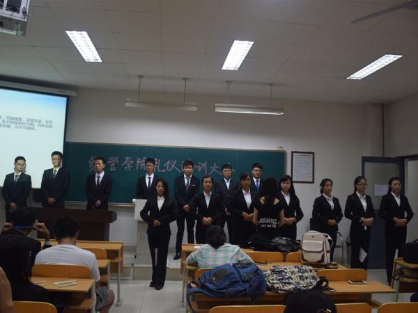 9月28日晚7:00于明远1313教室,经济与管理学院2015~2016礼仪队培训会议正式开始。前任礼仪队部长马颖慧作为主讲老师,给全体队员上了精彩的一课。