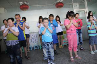 当我们走进这个位于西安市灯具厂三楼的学校之后,看到许多志愿者也在这里做志愿活动。