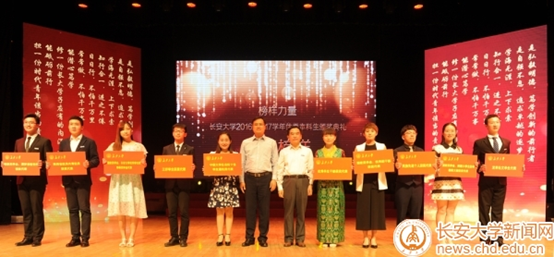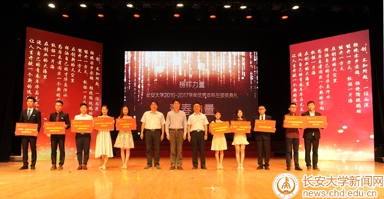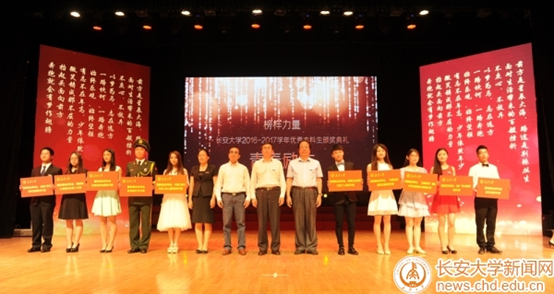 2017年5月25日晚7时,“榜样力量”长安大学优秀本科生颁奖典礼在渭水校区长安文化艺术中心大礼堂隆重举行。全国学生资助管理中心副主任涂义才,我校全体校领导、校长助理,以及参加全国学生资助培训会议的代表出席了本次颁奖典礼。