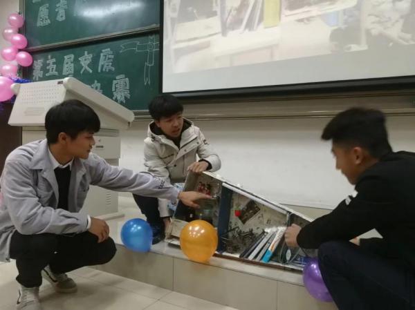 2017年11月25日晚7时,长安大学第五届“绿漫长安,情系环保”变废为宝手工艺品制作大赛决赛在明远1212教室顺利举行。来自建筑学院、地测学院、公路学院、信息学院、资源学院以及电控学院的各院属志愿者服务队的主席出席本次活动并担任评委。各参赛队伍以及电控学院志愿者服务队成员观看了比赛。