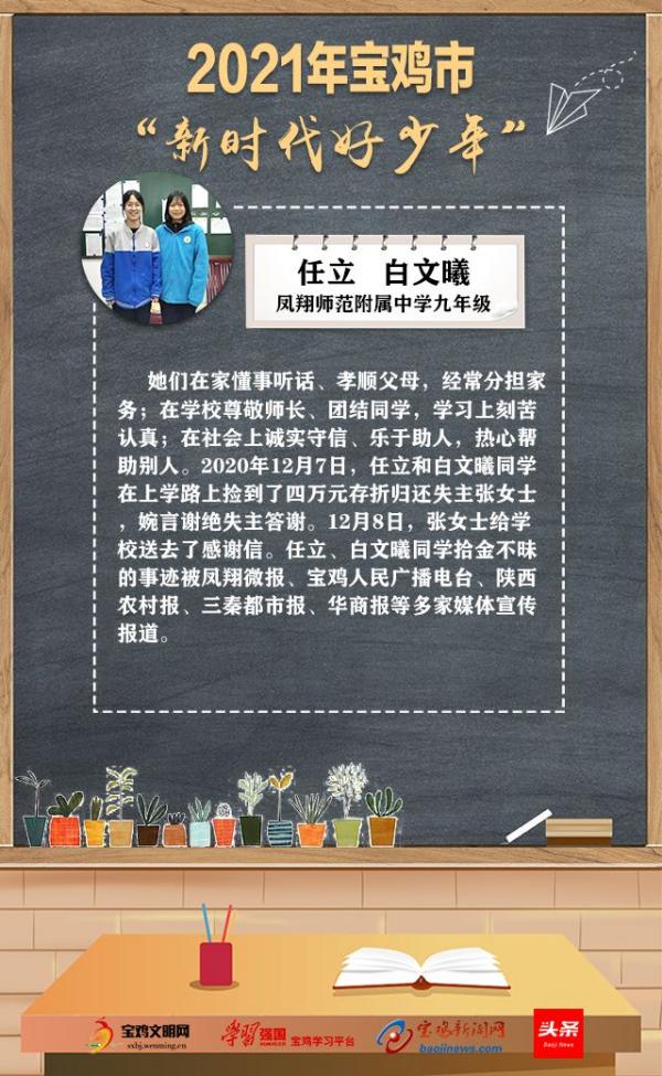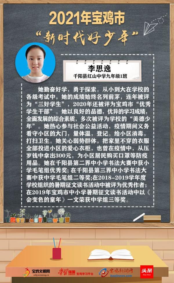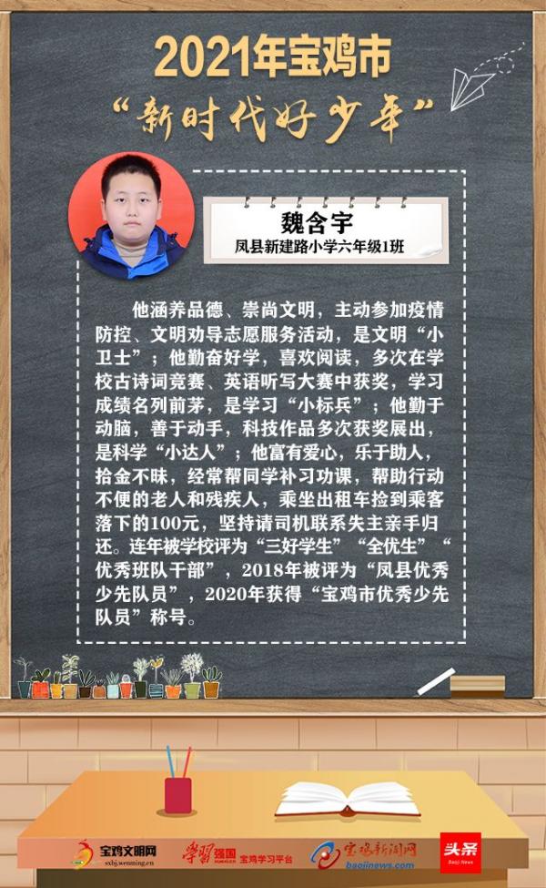 2021年宝鸡市“新时代好少年”名单公布
