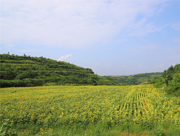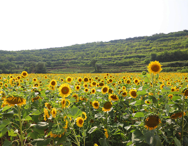 石鼓镇茵香河谷200亩油葵迎着太阳