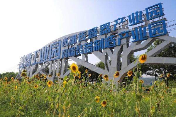 鲜花丛中的工业园宛若一颗明珠