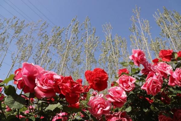 排排白杨挺立,四处百花盛开
