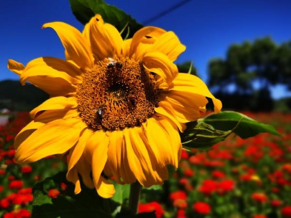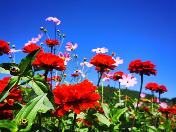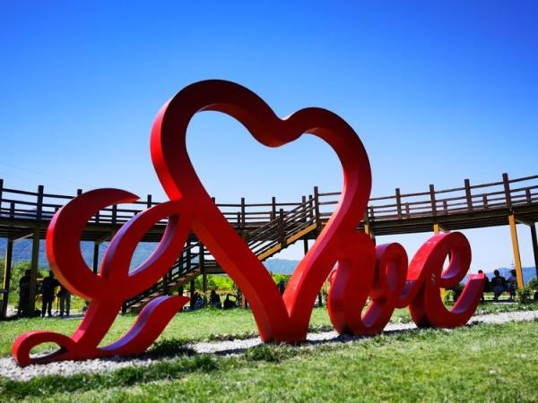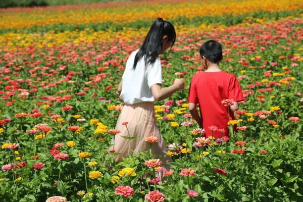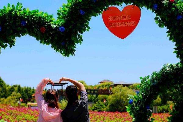 游人们徜徉在绿水青山、五彩缤纷的花海之中,