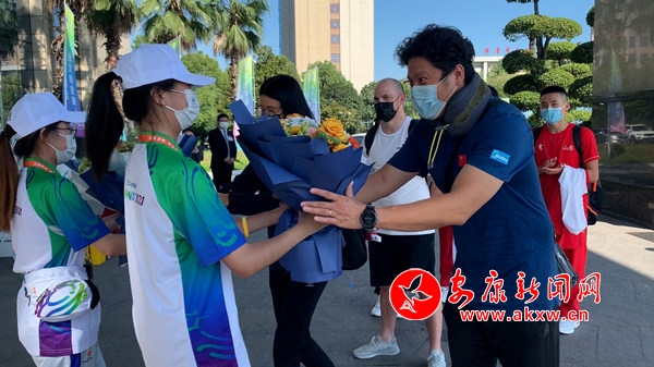 各位领队、教练、运动员,欢迎来到陕西省安康市参加十四运会马拉松游泳项目比赛。我代表竞委会向大家表示热烈的欢迎,祝大家在安康参赛期间工作顺利、生活愉快、勇创佳绩。随后,现场志愿者向报到的运动队送上鲜花。
