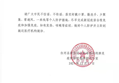 请广大市民不信谣、不传谣,落实好戴口罩、勤洗手、少聚集、常通风、一米线等个人防护措施,尽早完成新冠疫苗全程免疫和加强免疫。如有发热、咳嗽等症状,做好个人防护并立即到就近医疗机构就诊。