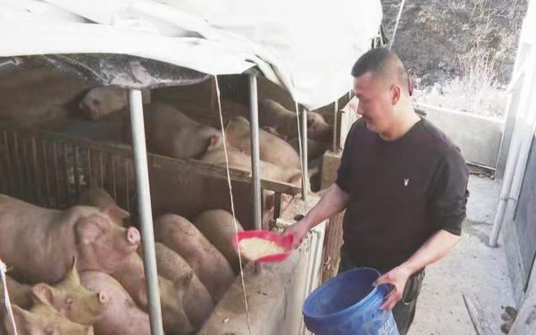在代理饲料的过程中,由于经常与养猪户和饲料厂家接触,吴兆顺夫妇学到了一些养猪方法。两人动了心思:家乡的生态环境这么好,如果能在老家发展养猪,岂不是既能照顾老人,又能挣钱养家。夫妻二人一拍即合,2020年,他们在老家开启了养猪之路。“主要是照顾老人,一家人都在屋里,养点猪,有点收入,整了点产业,心里还是满意的。”我忙完活儿,做点热乎饭让老人们吃个现成的,老人心里也高兴。他们一高兴,我干活也就更有精神了。”谈起生意和在家尽孝能够两全,夫妻俩相视一笑,满脸幸福地向笔者介绍。