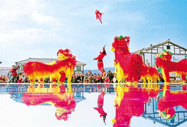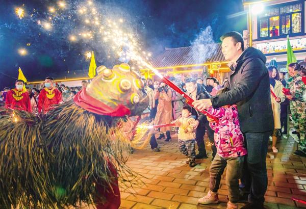 2月11日,石泉县池河金蚕小镇张灯结彩,鼓乐齐鸣。为喜迎新春,答谢四方来客,村民们自发组织排练了舞龙、烧狮子等精彩民俗节目,为家乡营造了喜庆祥和的节日气氛。 徐家蓉 摄