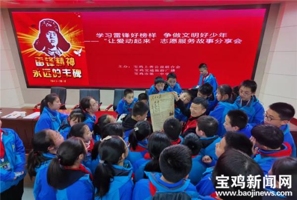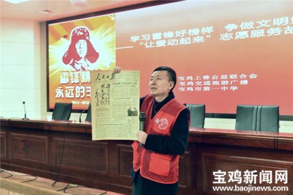 (宝鸡新闻网 罗君)3月2日下午,由宝鸡上善公益联合会主办的“学习雷锋好榜样,争做文明好少年”暨“让爱动起来”——志愿服务故事分享会在宝鸡市第一中学举行。宝鸡雷锋文化收藏达人周建华现场与师生互动,讲述雷锋故事。