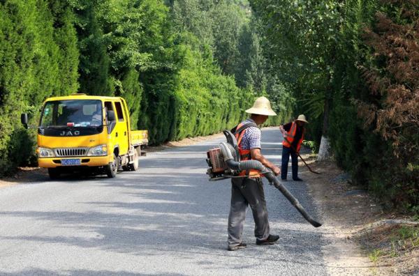 路政人员进行道路养护工作。