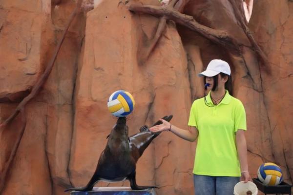 岐萌动物王国——海狮是十分聪明的“杂耍明星”,历来受到人们的喜爱,呆萌海狮在驯兽师的引导下,做出各种滑稽有趣的动作丰富搞笑的海狮节目表演。