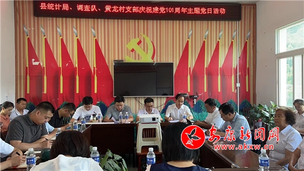 6月27日,汉阴县统计局支部委员会、国家统计局汉阴调查队支部委员会与双河口镇黄龙村支部委员会共同开展了庆七一系列活动,组织学习了省第十四次党代会精神及安康市委组织部关于印发《规范村级组织活动场所管理使用办法》;诵读重温了入党答词;宣读了局机关党员与双河口镇黄龙村支部农村党员结对帮扶的决定,现场举行党员结对帮扶承诺签字仪式;讲授了《以组织振兴为引领实现机关农村党建融合发展》的专题党课;组织大家观看了介绍何振亚、杨弃、沈启贤三位开国将军光辉英雄事迹的电视宣传片;座谈会后还开展了我为群众办实事送清凉志愿服务活动。