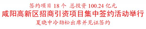 7月19日下午,咸阳高新区招商引资项目集中签约活动举行。市委书记夏晓中、市长冷劲松出席并见证签约。市委常委、常务副市长韩宏琪主持签约活动。市委常委、市委秘书长、市委统战部部长王春霄参加。