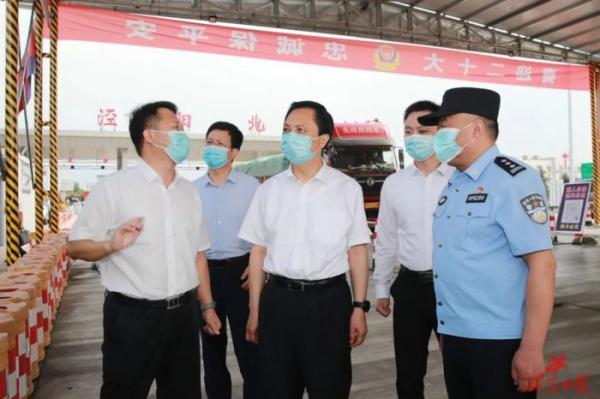 市委书记夏晓中在西咸北环线泾阳北出口疫情查验点调研。